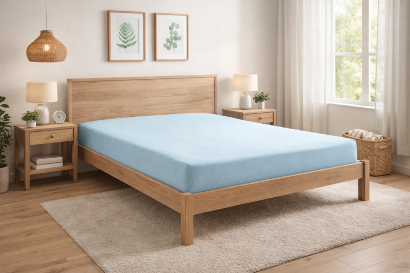 Prześcieradło niebieskie 140×200 bawełniane z gumką